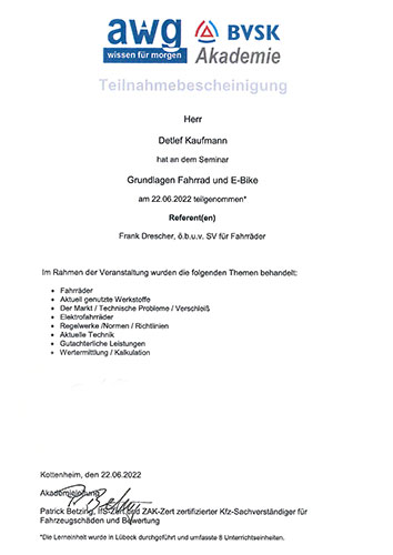 Jetzt neu: Erstellung von Gutachten für Fahrräder und E-Bikes.